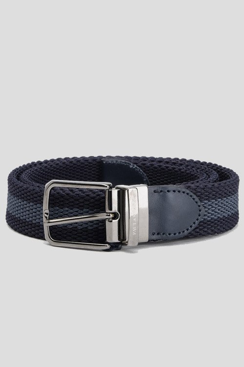 Детали: Мужской темно-синий ремень из вискозы от Paul & Shark (Пол энд Шарк). Плетеный дизайн, металлическая пряжка