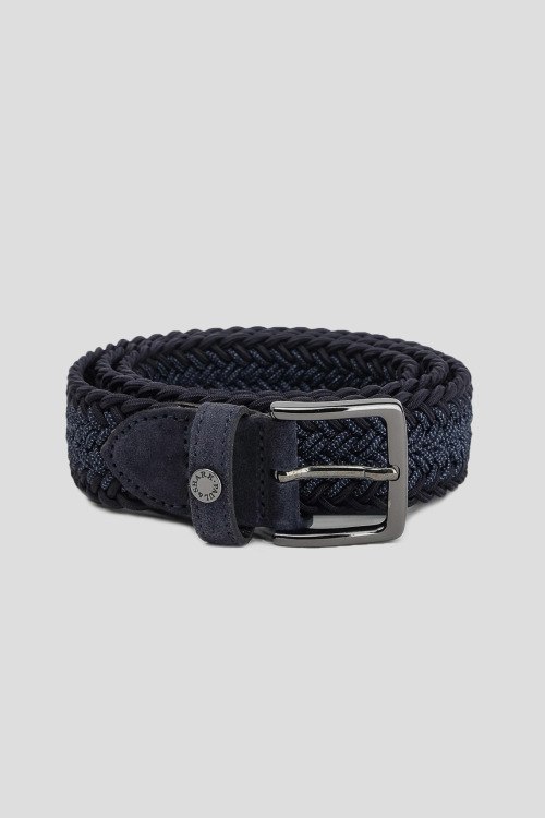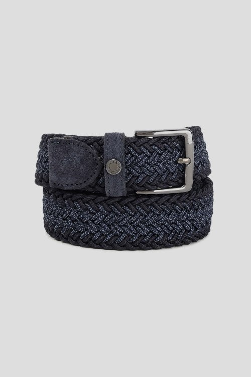 Детали: Мужской темно-синий ремень из вискозы от Paul & Shark (Пол энд Шарк). Плетеный дизайн, серебристая пряжка
