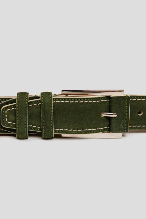 Детали: Мужской темно-зеленый ремень из нубука от Scabal (Скабал). Металлическая классическая пряжка, регулируемый размер, металлический логотип бренда. Измерения: 132х3,5 см