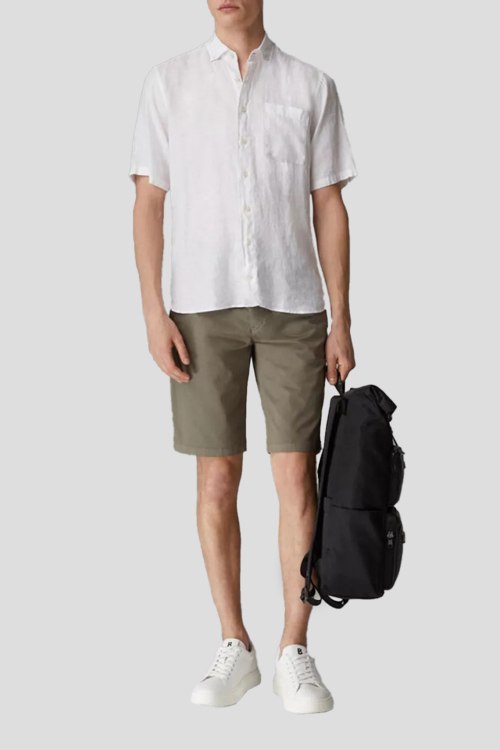 Детали: Мужская белая льняная рубашка Lykos от Bogner (Богнер). Отложной воротник, накладной карман на груди, короткий рукав, застежка на пуговицы, классическая длина