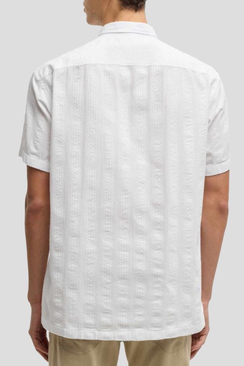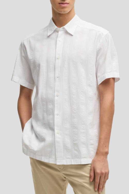 Детали: Мужская белая хлопковая рубашка Cory от Hugo Boss (Хуго Босс). Отложной воротник, застежка на пуговицы, короткий рукав, классическая длина