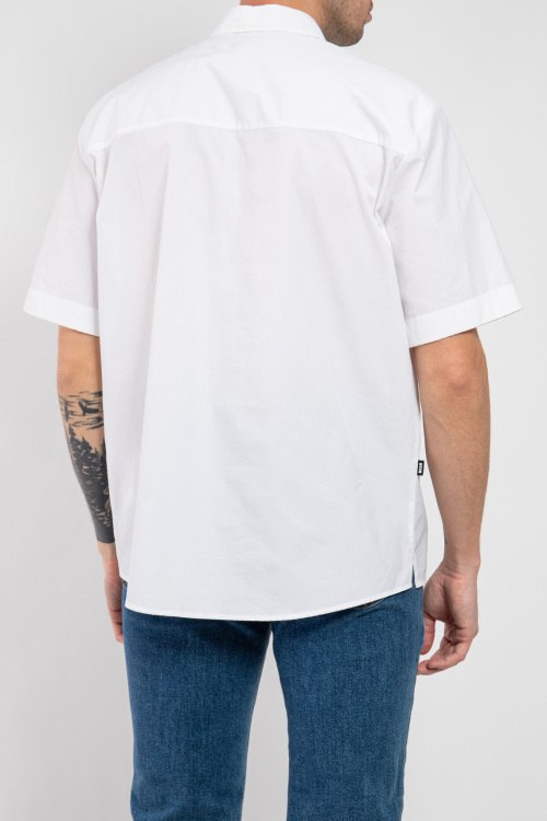 Мужская белая хлопковая рубашка от MSGM (ЭмСиДжиЭм). Отложной воротник, застежка на пуговицы, короткий рукав, классическая длина, ровный нижний край.