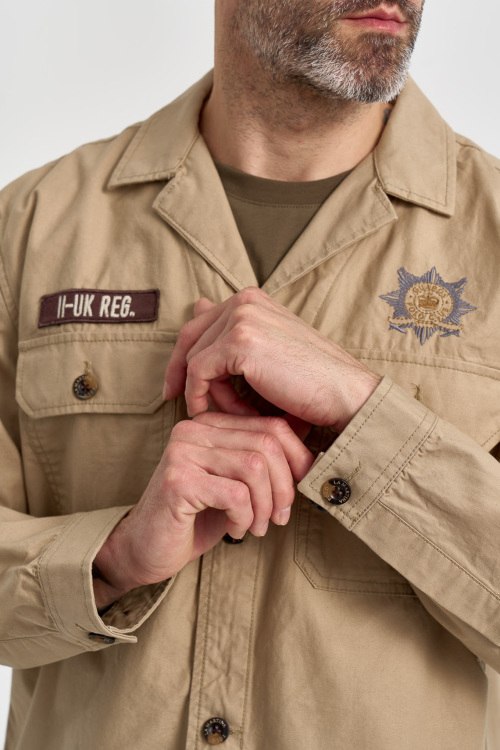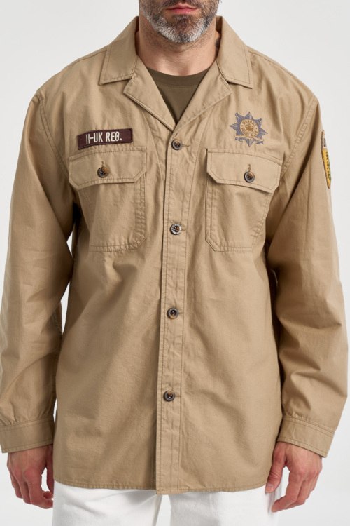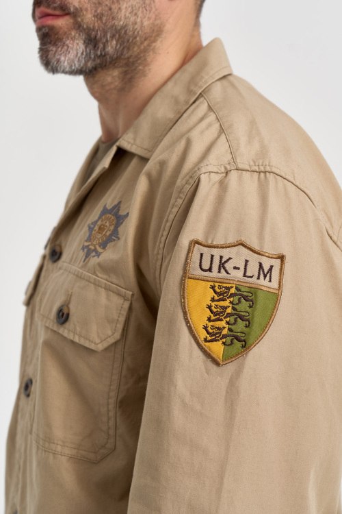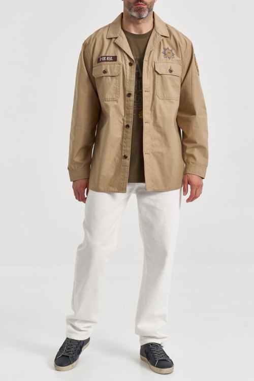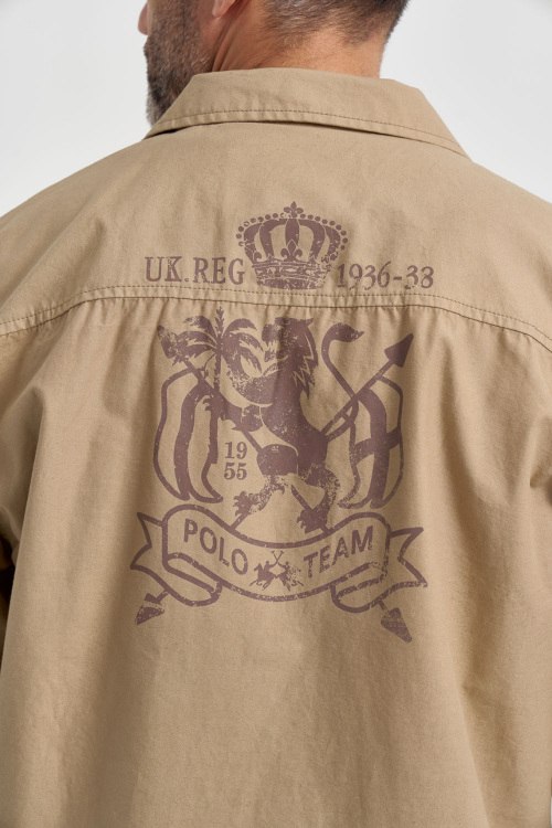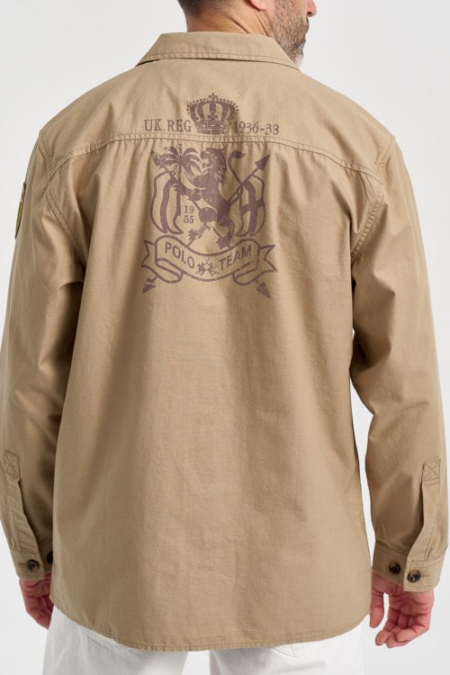Детали: Мужская бежевая хлопковая рубашка от La Martina (Ла Мартина). Брендовые нашивки спереди и на рукавах, принт на спине, отложной воротник, два кармана на груди, застежка на пуговицы, манжеты на пуговицах, классическая длина. Параметры модели: 103 см - 87 см - 99 см. Рост - 182 см. Размер на фото - L
