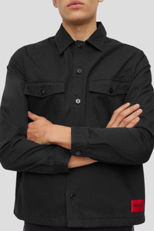 Детали: Мужская черная хлопковая рубашка Enalu из хлопка от Hugo by Hugo Boss (Хуго бай Хуго Босс). Классический воротник, застежка на пуговицы, длинные рукава, манжеты на пуговице, нагрудные карманы, патч-лого