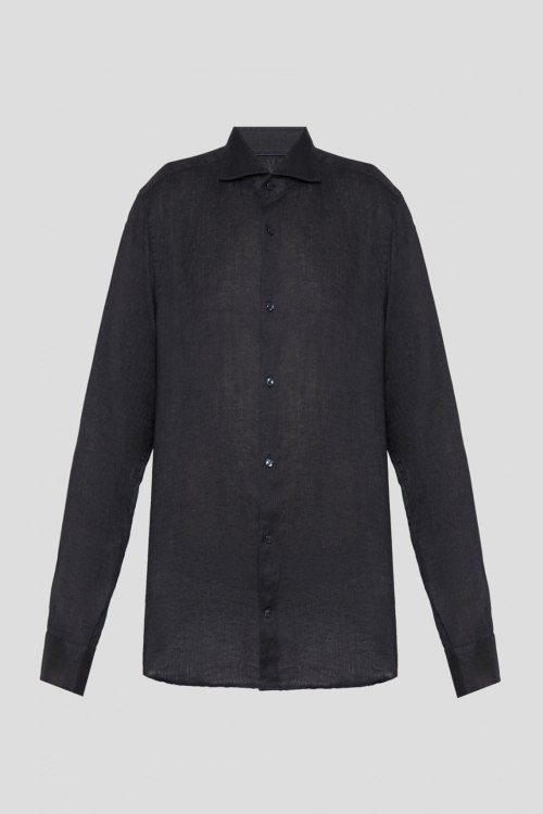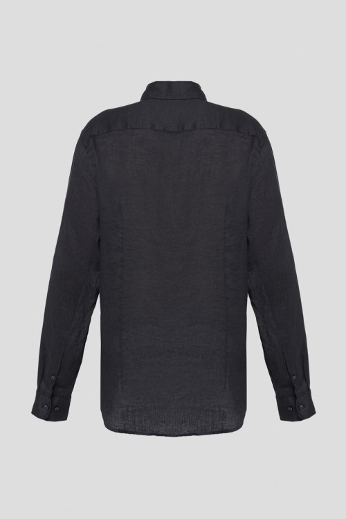 Детали: Мужская черная рубашка из льна от Joop! (Йооп!). Прямой фасон, отложной воротник, застежка на пуговицы, манжеты на пуговицах. Замеры: длина рукава: длинный, для размера 42 - 66 см, обхват груди: для размера 42 - 110 см, обхват талии: для размера 42 - 104 см, длина изделия по среднему шву спинки от горловины: для размера 42 - 78 см