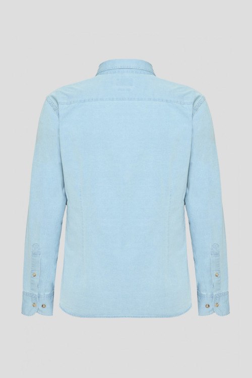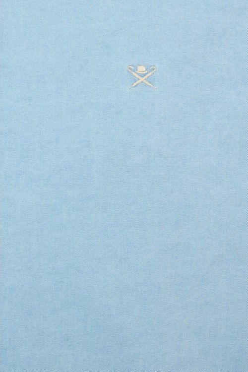 Детали: Мужская голубая джинсовая рубашка от Hackett (Хаккетт). Логотип на груди, отложной воротник, застежка на пуговицы, манжеты на пуговицах, классическая длина. Длина рукава: длинный, для размера М - 63 см, обхват груди: для размера М - 106 см, обхват талии: для размера М - 98 см, длина изделия по среднему шву спинки от горловины: для размера М - 73 см