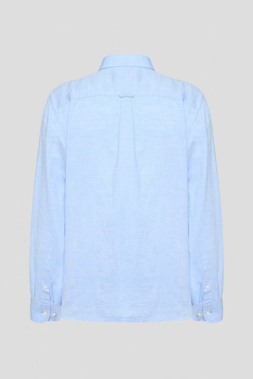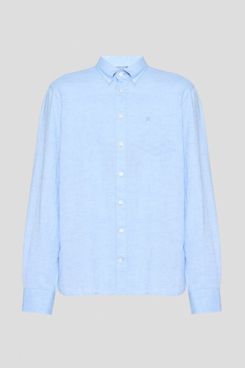Детали: Мужская голубая льняная рубашка от Hackett (Хаккетт). Карман с логотипом на груди, отложной воротник, застежка на пуговицы, манжеты на пуговицах, классическая длина. Длина рукава: длинный, для размера М - 67 см, обхват груди: для размера М - 116 см, обхват талии: для размера М - 110 см, длина изделия по среднему шву спинки от горловины: для размера М - 73 см
