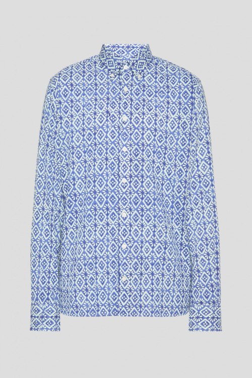 Детали: Мужская голубая хлопковая рубашка от Hackett (Хаккетт). Узор по всей поверхности, отложной воротник, застежка на пуговицы, манжеты на пуговицах, классическая длина. Длина рукава: длинный, для размера М - 67 см, обхват груди: для размера М - 116 см, обхват талии: для размера М - 106 см, длина изделия по среднему шву спинки от горловины: для размера М - 76 см