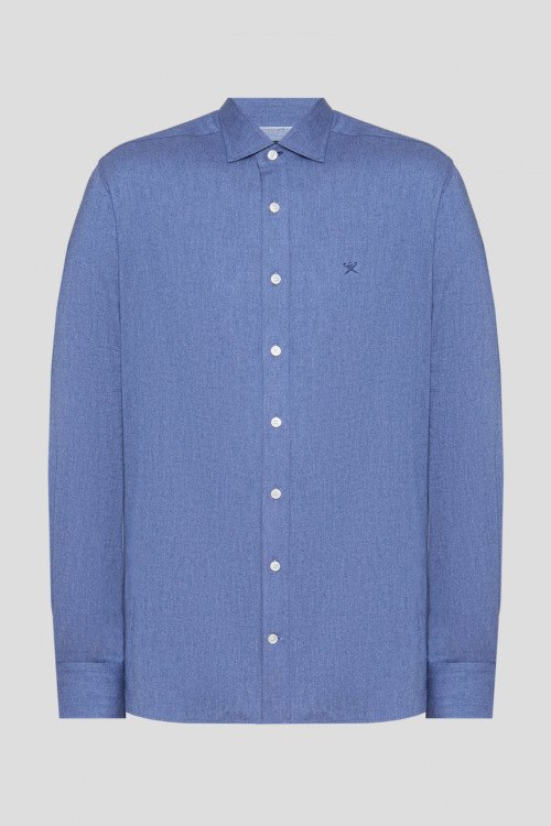 Детали: Мужская голубая хлопковая рубашка от Hackett (Хаккетт). Логотип на груди, отложной воротник, застежка на пуговицы, манжеты на пуговицах, классическая длина. Длина рукава: длинный, для размера М - 65 см, обхват груди: для размера М - 110 см, обхват талии: для размера М - 100 см, длина изделия по среднему шву спинки от горловины: для размера М - 74,5 см