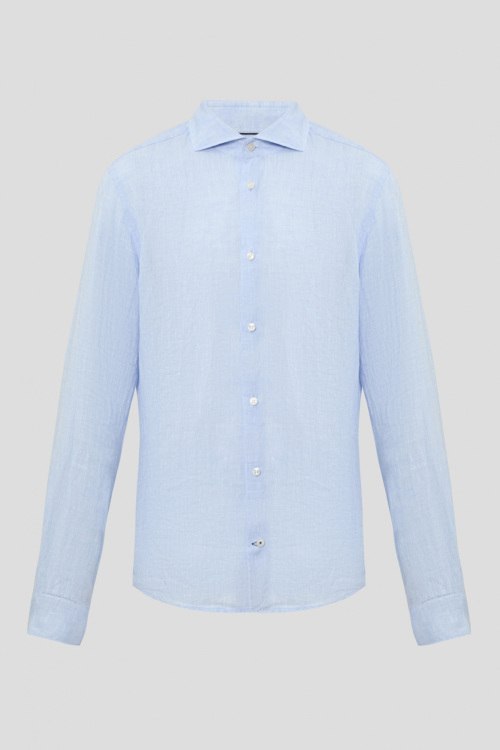 Детали: Мужская голубая льняная рубашка от Joop! (Йооп!). Отложной воротник, застежка на пуговицы, манжеты на пуговицах, классическая длина. Длина рукава: длинный, для размера 40 - 64 см, обхват груди: для размера 40 - 104 см, обхват талии: для размера 40 - 96 см, длина изделия по среднему шву спинки от горловины: для размера 40 - 76 см