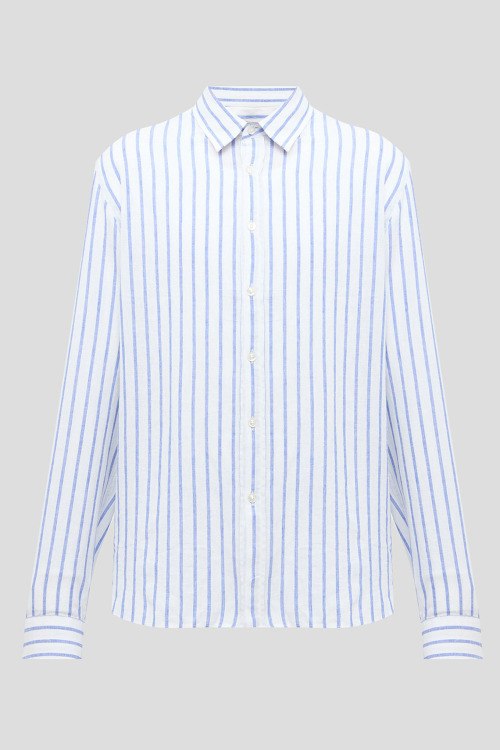 Детали: Мужская белая льняная рубашка от Woolrich (Вулрич). Дизайн в полоску, классический воротник, застежка на пуговицах, длинные рукава, манжеты на пуговицах, фигурный низ изделия. Замеры: длина рукава: длинный, для размера M – 64 см, обхват груди: для размера M – 106 см, обхват талии: для размера M – 104 см, длина изделия по среднему шву спинки от горловины: для размера M – 78 см