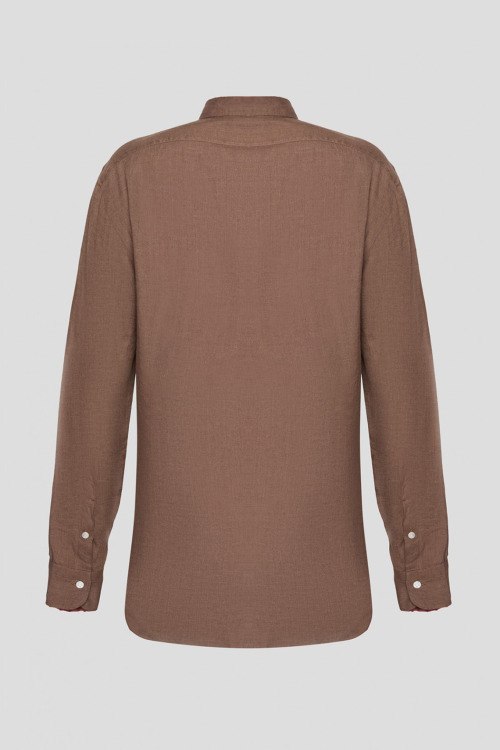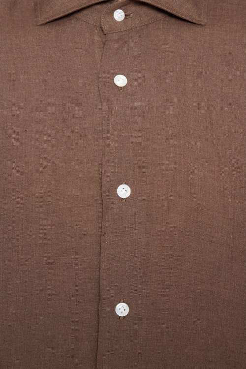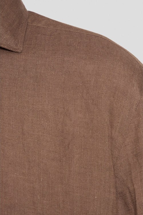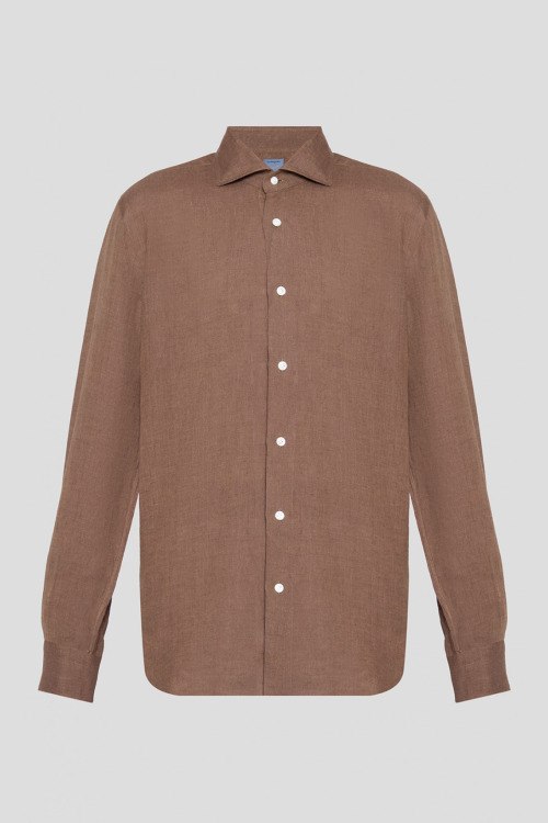 Детали: Мужская коричневая льняная рубашка от Barba Napoli (Барба Наполи). Классический воротник, застежка на пуговицы, длинные рукава, манжеты на пуговицы. Замеры: длина рукава: длинный, для размера 41 - 67 см, обхват груди: для размера 41 - 108 см, обхват талии: для размера 41 - 102 см, длина изделия по среднему шву спинки от горловины: для размера 41 - 81 см. Производство: Италия