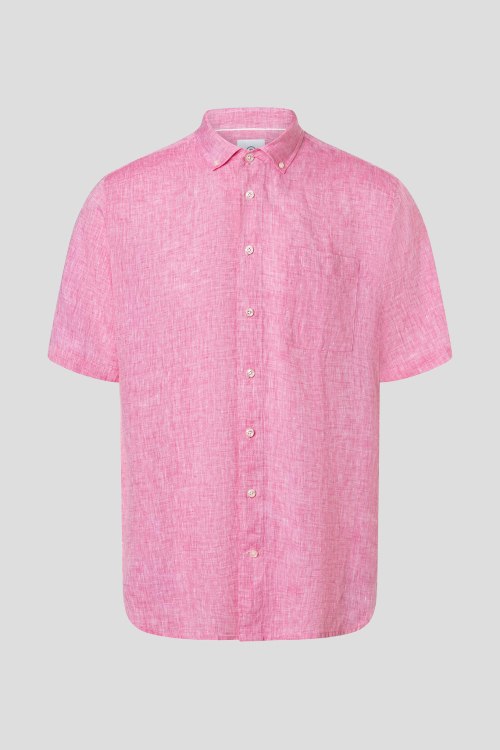 Детали: Мужская розовая льняная рубашка Lykos от Bogner (Богнер). Классический воротник, застежка на пуговицы, короткие рукава