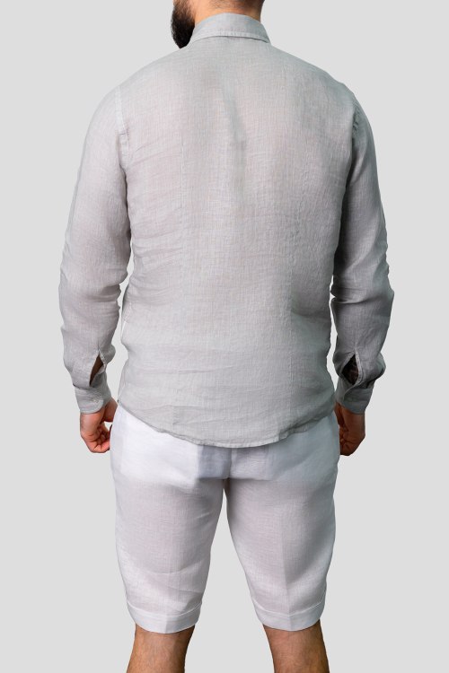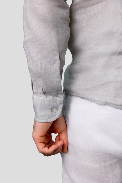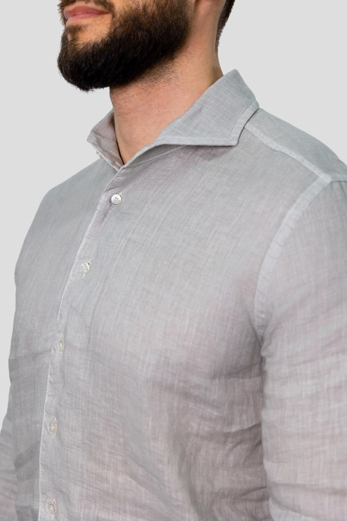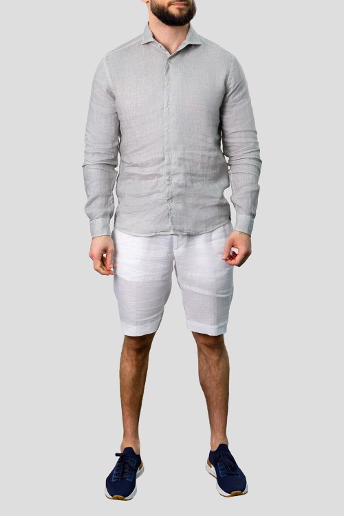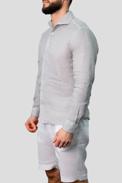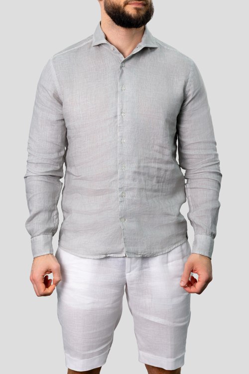 Детали: Мужская серая льняная рубашка от Gran Sasso (Гран Сассо). Отложной воротник, застежка на пуговицы, манжеты на пуговицах, классическая длина