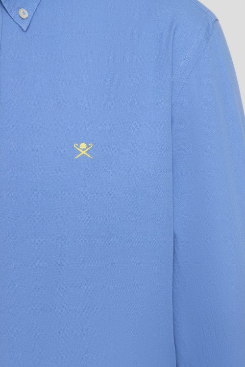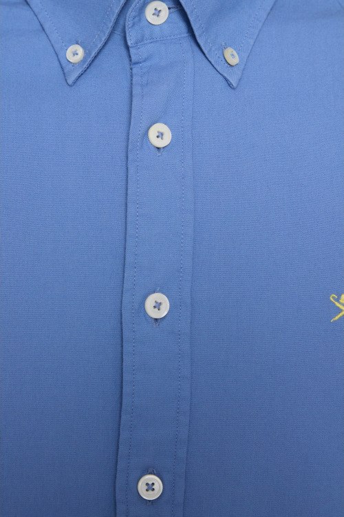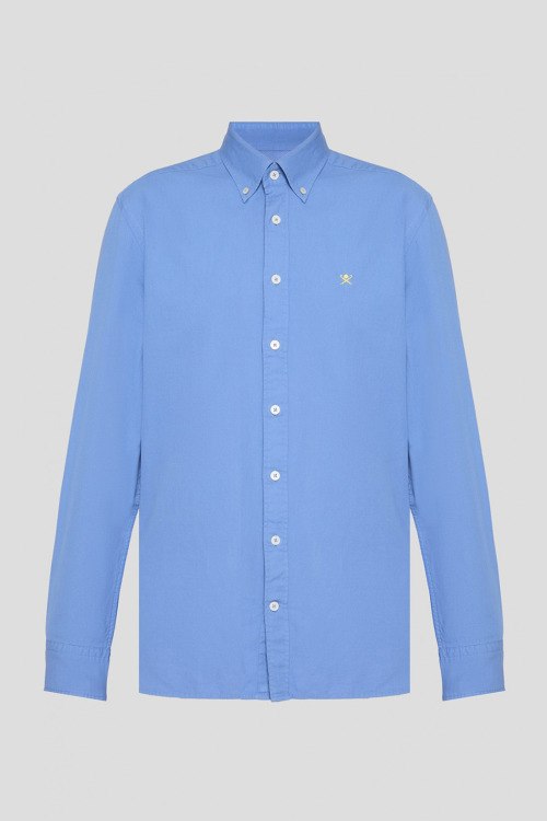 Детали: Мужская светло-синяя хлопковая рубашка от Hackett (Хаккетт). Логотип на груди, отложной воротник, застежка на пуговицы, манжеты на пуговицах, классическая длина. Длина рукава: длинный, для размера М - 65 см, обхват груди: для размера М - 108 см, обхват талии: для размера М - 96 см, длина изделия по среднему шву спинки от горловины: для размера М - 73 см