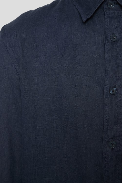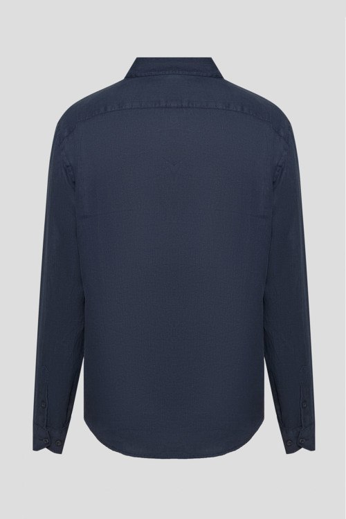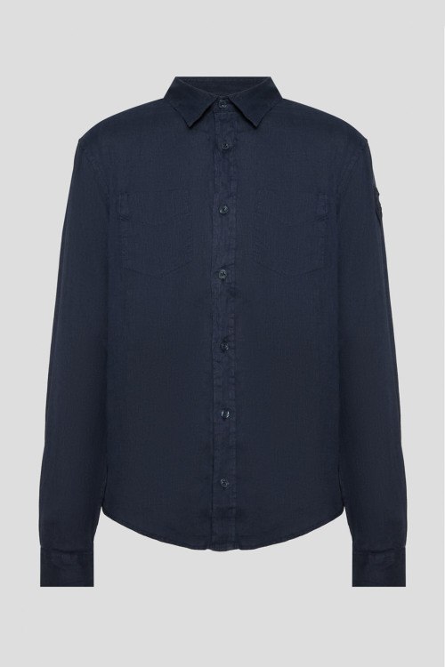 Детали: Мужская темно-синяя льняная рубашка от Blauer (Блауэр). Два кармана на груди, отложной воротник, застежка на пуговицы, манжеты на пуговицах, классическая длина. Длина рукава: длинный, для размера М - 63 см, обхват груди: для размера М - 102 см, обхват талии: для размера М - 104 см, длина изделия по среднему шву спинки от горловины: для размера М - 73 см