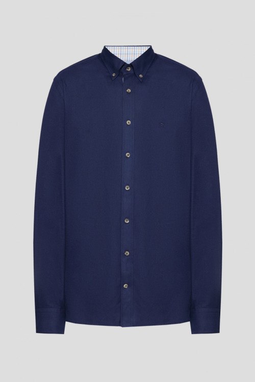 Детали: Мужская темно-синяя хлопковая рубашка от Hackett (Хаккетт). Логотип на груди, отложной воротник, застежка на пуговицы, манжеты на пуговицах, классическая длина. Длина рукава: длинный, для размера М - 65 см, обхват груди: для размера М - 110 см, обхват талии: для размера М - 100 см, длина изделия по среднему шву спинки от горловины: для размера М - 74,5 см