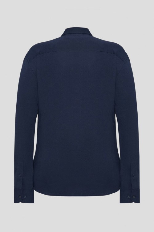 Детали: Мужская темно-синяя хлопковая рубашка от Hackett (Хаккетт). Отложной воротник, застежка на пуговицы, манжеты на пуговицах, классическая длина. Длина рукава: длинный, для размера М - 64 см, обхват груди: для размера М - 112 см, обхват талии: для размера М - 100 см, длина изделия по среднему шву спинки от горловины: для размера М - 74,5 см