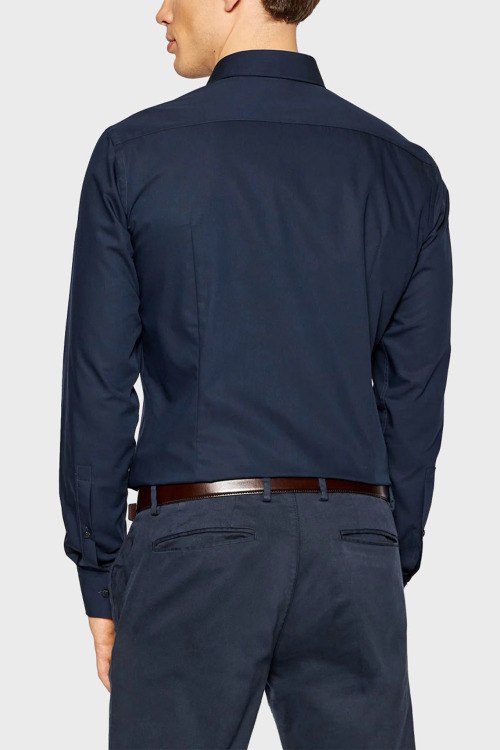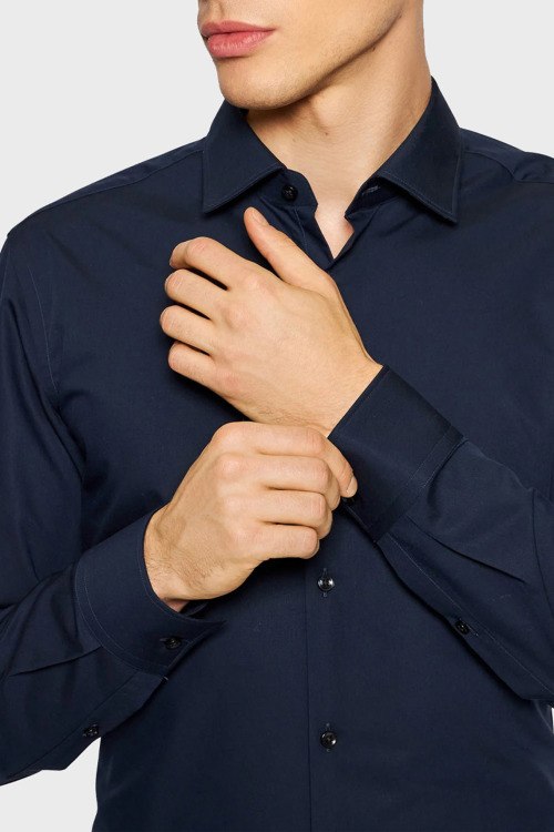 Детали: Мужская темно-синяя хлопковая рубашка C-Jenno от Hugo by Hugo Boss (Хуго бай Хуго Босс). Отложной воротник, застежка на пуговицы, манжеты на пуговицах, классическая длина