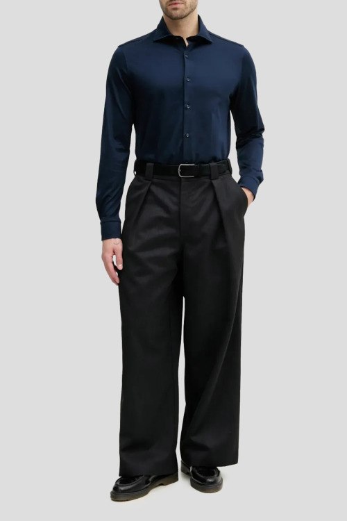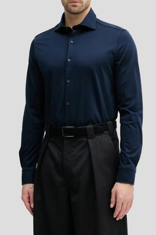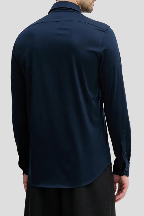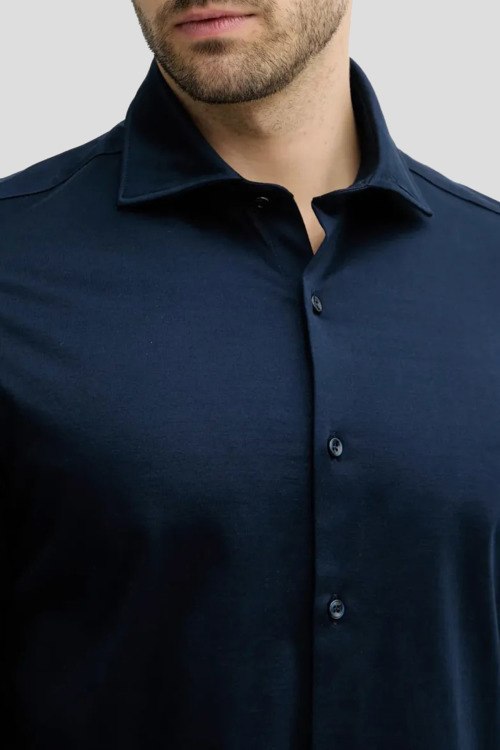 Детали: Мужская темно-синяя рубашка из хлопка от Paul & Shark (Пол энд Шарк). Классический воротник, застежка на пуговицы, длинные рукава, фигурный низ изделия