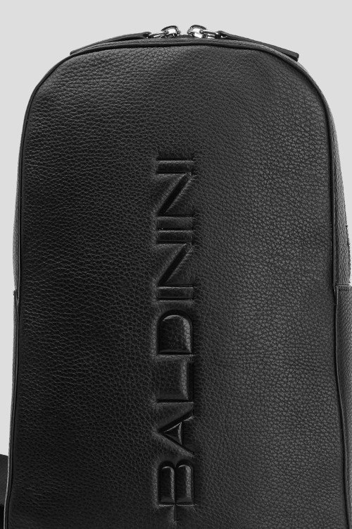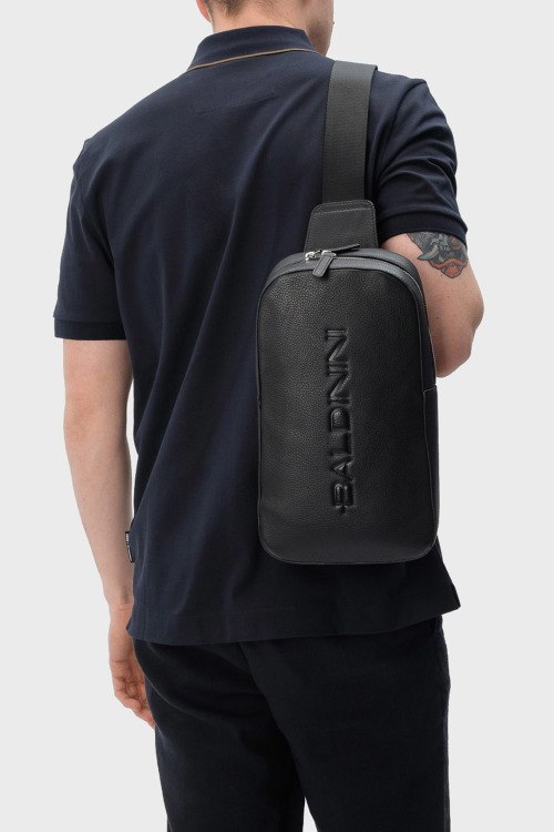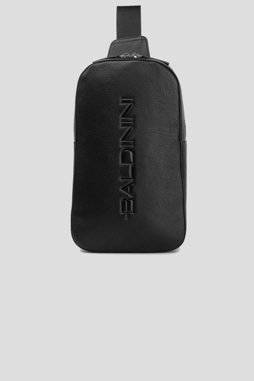 Детали: Мужская черная кожаная сумка-слинг от Baldinini (Балдинини). Модель из зернистой кожи, тиснение логотипа, застежка-молния, одно отделение, регулируемый плечевой ремень