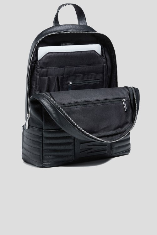 Детали: Мужской черный рюкзак из экокожи от Bikkembergs (Биккембергс). Модель из гладкой кожи, тиснение логотипа, застежка-молния, два отделения, верхняя ручка, регулируемые плечевые ремни. Размеры: 30 x 38 x 12,5 см