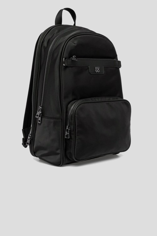 Детали: Мужской черный текстильный рюкзак Nesh от Hugo by Hugo Boss (Хуго бай Хуго Босс). Значок с логотипом, два внешних кармана на молнии, застежка-молния, одно отделение, верхняя ручка, регулируемые плечевые ремни. Размеры: 44 x 28.5 x 21.5 см