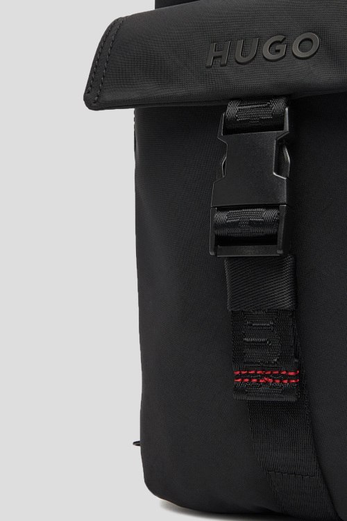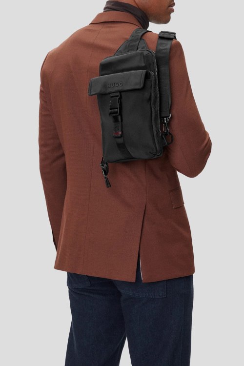 Детали: Мужская черная текстильная сумка-слинг Marsel от Hugo by Hugo Boss (Хуго бай Хуго Босс). Логотип спереди, накладной карман, застежка-молния, одно отделение, регулируемый плечевой ремень. Размеры: высота: 30 см, ширина: 19 см, ширина по дну: 5 см