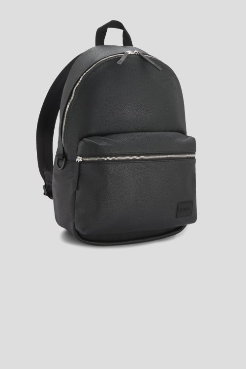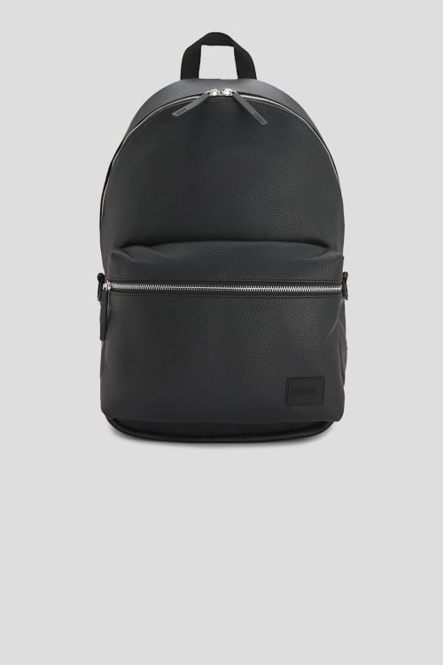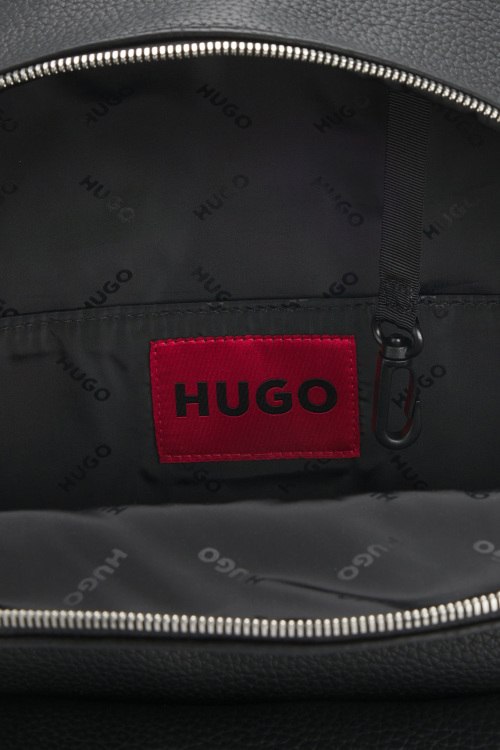 Детали: Мужской черный рюкзак из экокожи Zair от Hugo by Hugo Boss (Хуго бай Хуго Босс). Модель из зернистой кожи, нашивка логотипа, внешний карман на молнии, застежка-молния, одно отделение, верхняя ручка, регулируемые плечевые ремни. Размеры: ширина у основания: 29 см, высота: 41 см, глубина: 14,5 см