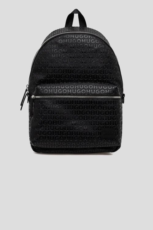 Детали: Мужской черный рюкзак из экокожи Ethon от Hugo by Hugo Boss (Хуго бай Хуго Босс). Монограмма по всей поверхности, накладной карман на молнии, застежка-молния, одно отделение, верхняя ручка, регулируемые плечевые ремни. Размеры: глубина: 13 см, высота: 42 см, ширина у основания: 25 см