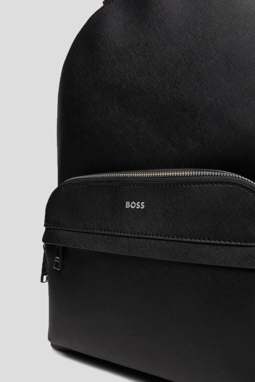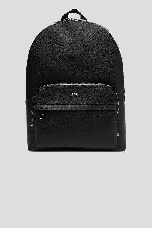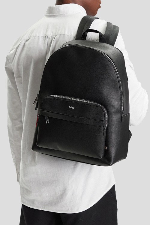 Детали: Мужской черный рюкзак из натуральной кожи от Hugo Boss (Хуго Босс). Одно отделение, застежка на молнию, внутренний краман на молнии, внешний карман на молнии, верхняя ручка, регулируемые плечевые ремни. Размер: 32х42х14 см
