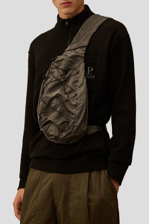 Детали: Мужская сумка-слинг цвета хаки из такни Nylon B от C.P. Company (СиПи Компани). Боковой карман на молнии, нашивка с логотипом, застежка-молния, одно отделение, регулируемый плечевой ремень. Размеры: глубина: 8 см, высота: 40 см, ширина у основания: 20 см