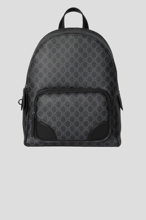 Мужской черный рюкзак из натуральной кожи от Gucci (Гуччи). Одно отделение, застежка на молнию, дизайн с монограммой, внешний карман на молнии, один внутренний карман, верхняя ручка, регулируемые плечевые ремни. Замеры: ширина 31 см, высота 41 см, глубина 18 см. Вес: приблизительно 1,45 кг