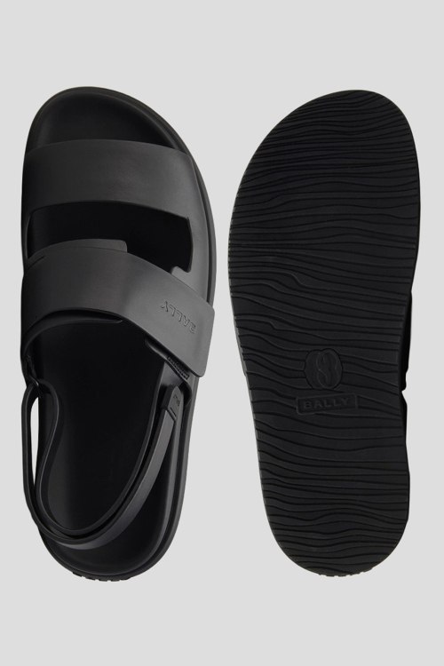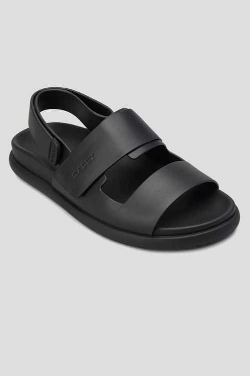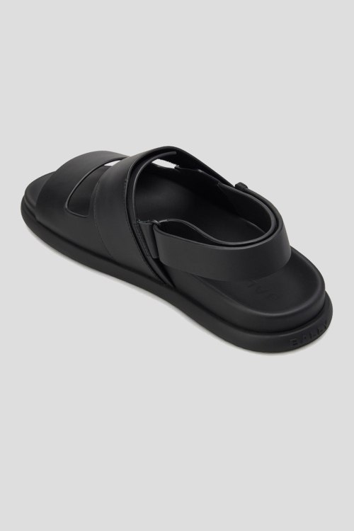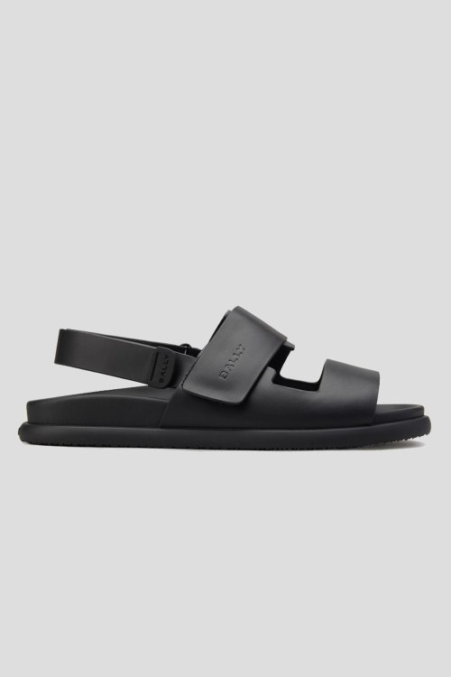 Детали: Мужские черные кожаные сандалии от Bally (Балли). Модель из гладкой кожи, тиснение логотипа, ремешки на липучке, закругленный носок