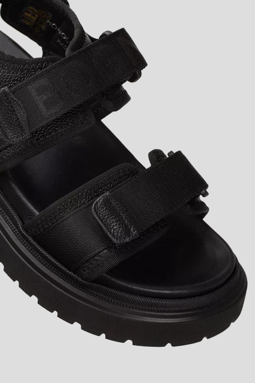 Детали: Мужские черные сандалии из текстиля и кожи от Bogner (Богнер). Комбинация материалов, ремешки на липучках, закругленный носок
