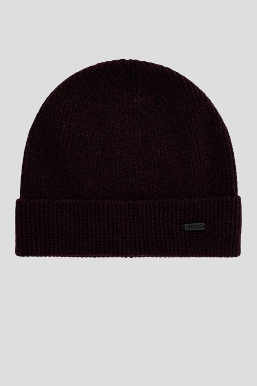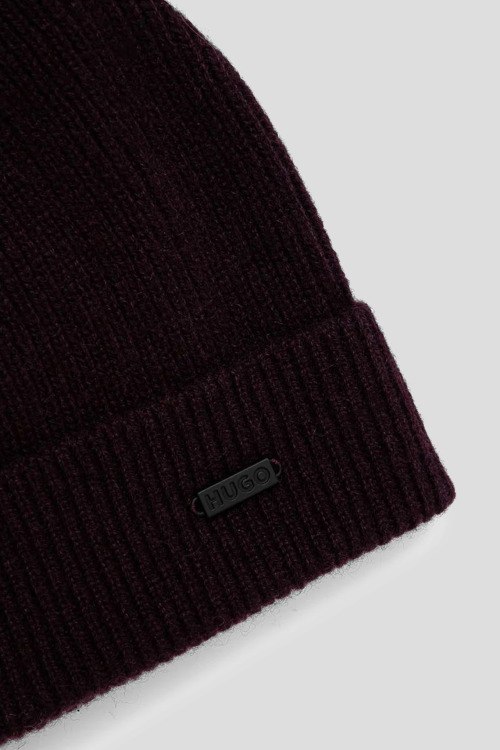 Детали: Мужская темно-бордовая шапка из кашемира от Hugo by Hugo Boss (Хуго бай Хуго Босс). Модель бини, дизайн с отворотом, патч-лого