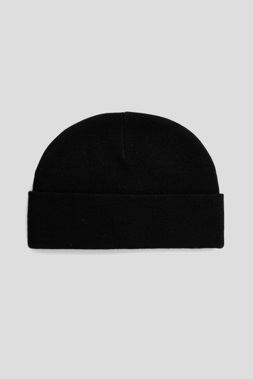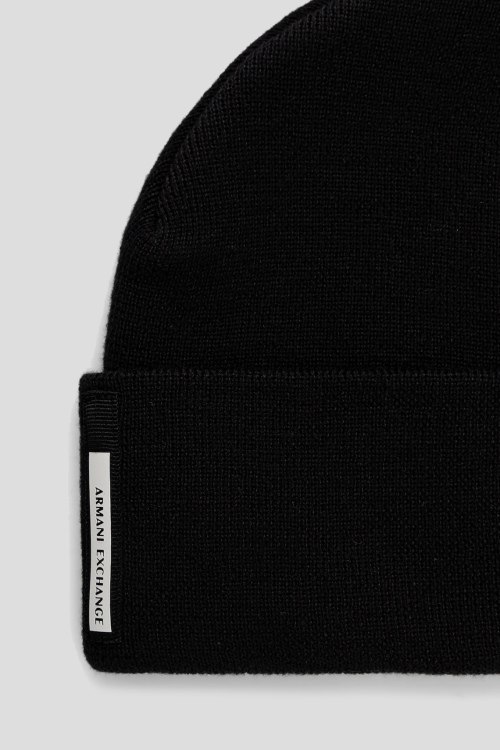 Детали: Мужская черная шапка бини от Armani Exchange (Армани Эксчендж). Облегающий фасон, нашивка с логотипом, широкий отворот
