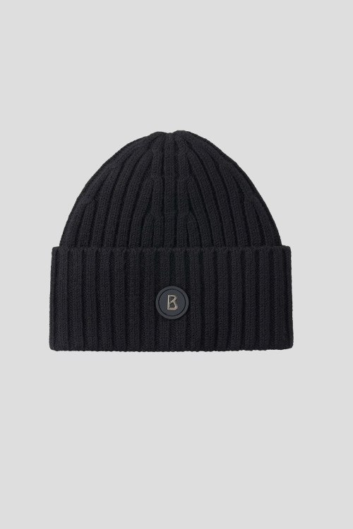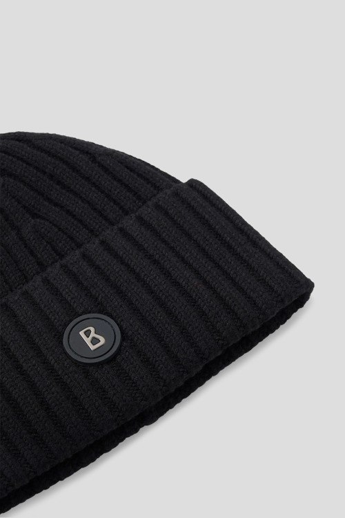Детали: Мужская черная шапка бини из вискозы и шерсти Bony от Bogner (Богнер). Крупная вязка, нашивка с логотипом, широкий отворот