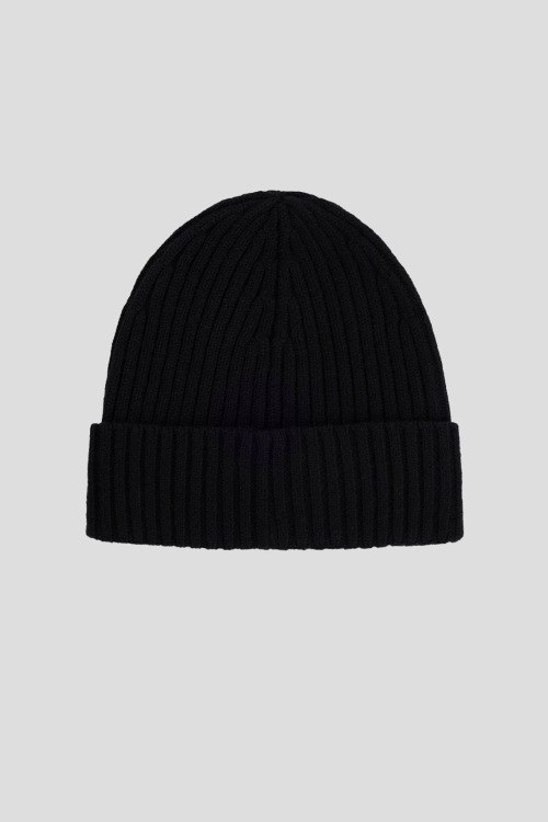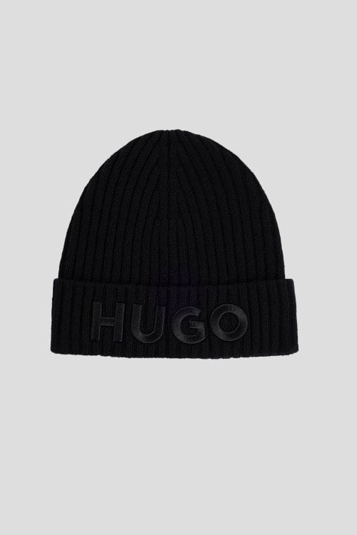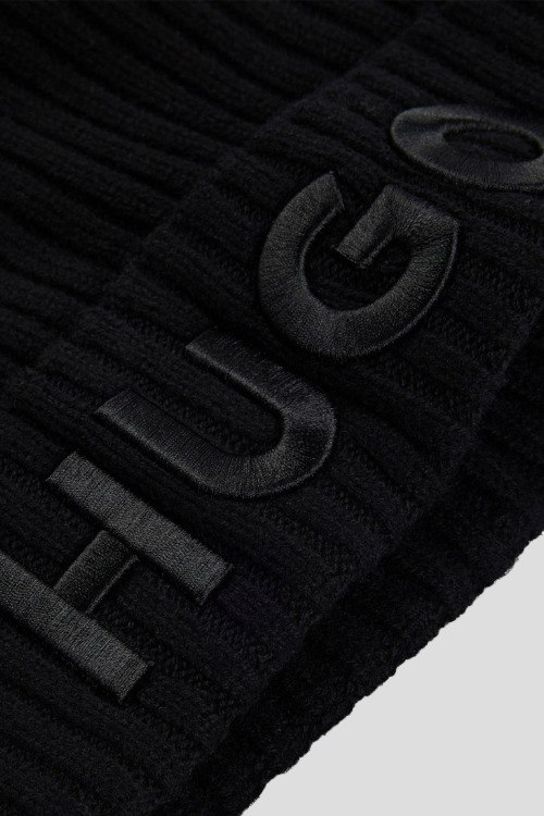 Детали: Мужская черная шерстяная шапка бини от Hugo by Hugo Boss (Хуго бай Хуго Босс). Крупная вязка, нашивка с логотипом, широкий отворот