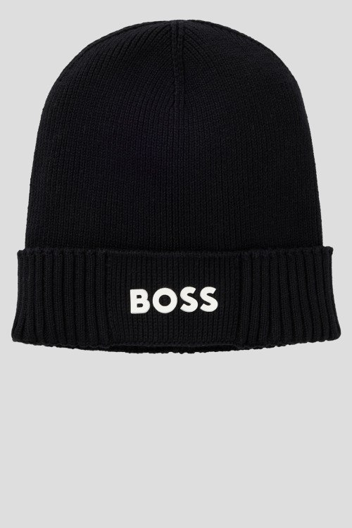 Детали: Мужская черная шапка бини из хлопка и шерсти Asic от Hugo by Hugo Boss (Хуго бай Хуго Босс). Классическая вязка, нашивка с логотипом, широкий отворот