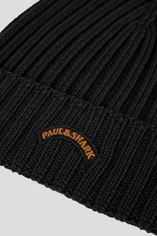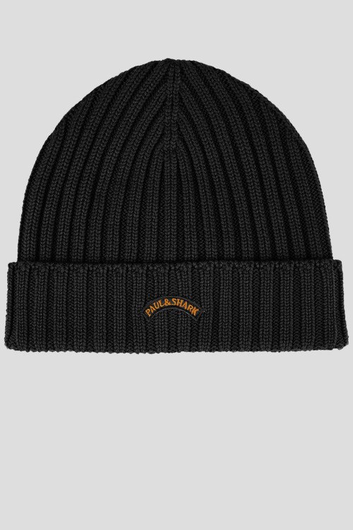 Детали: Мужская черная шерстяная шапка бини от Paul & Shark (Пол энд Шарк). Классическая вязка, нашивка с логотипом, широкий отворот