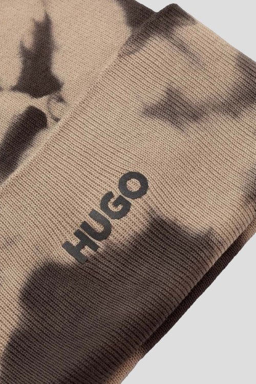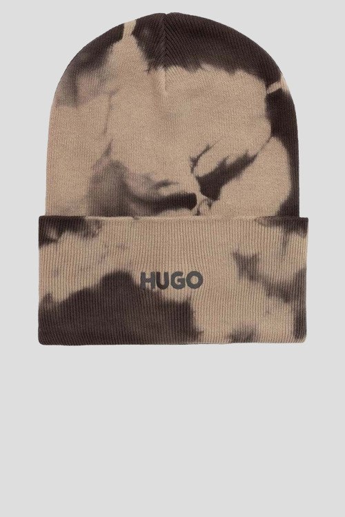 Детали: Мужская коричневая шапка из хлопка от Hugo by Hugo Boss (Хуго бай Хуго Босс). Модель бини, дизайн с узором, вышитый логотип на отвороте