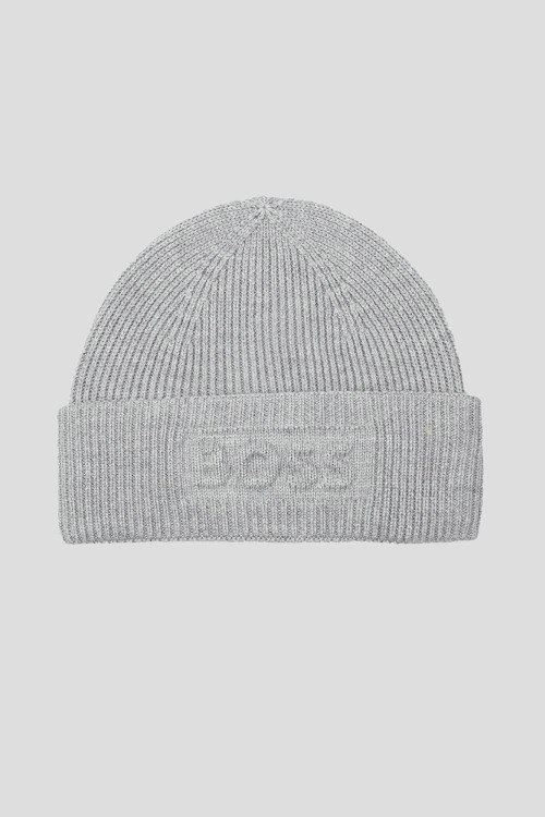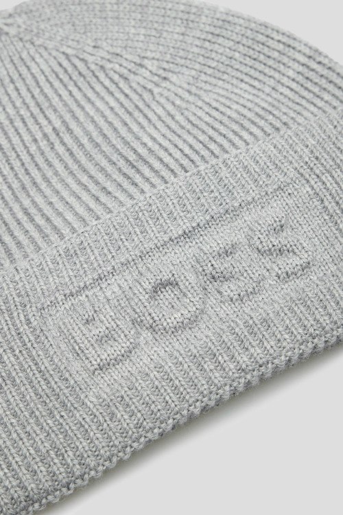 Детали: Мужская серая шапка из шерстяного микса от Hugo Boss (Хуго Босс). Модель бини, широкий отворотом, тиснение с логотипом бренда