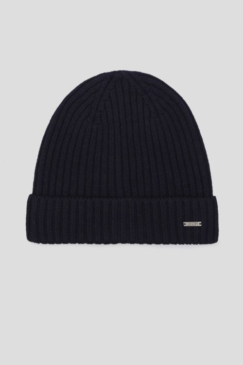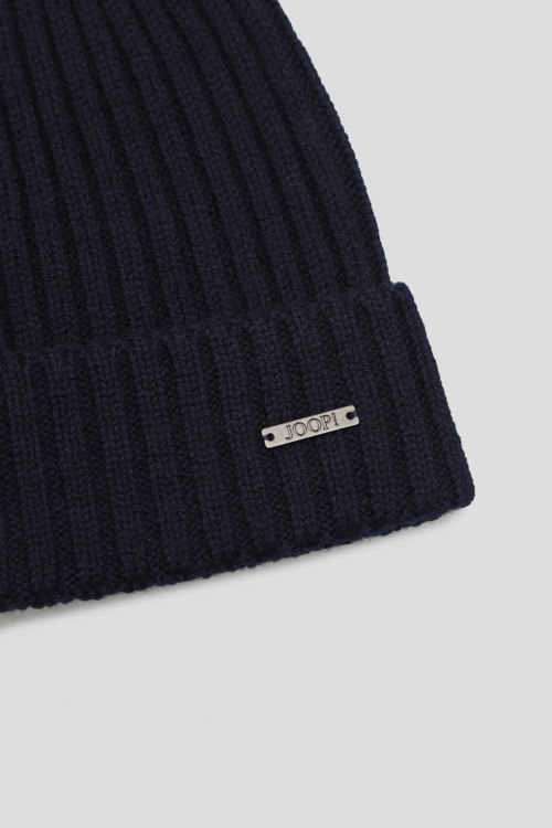 Детали: Мужская темно-синяя шапка из шерсти от Joop! (Йооп!). Модель бини с отворотом, дизайн в рубчик, нашивка с логотипом бренда. Диаметр: 25 см