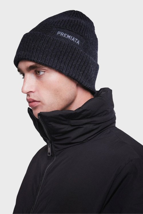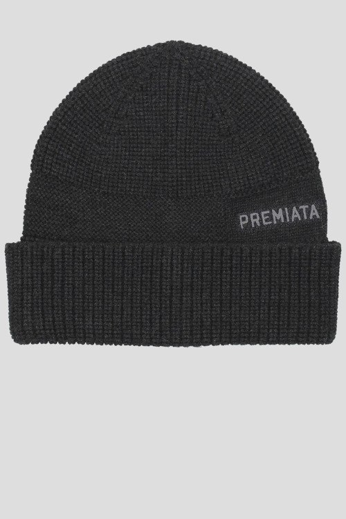 Детали: Мужская темно-серая шерстяная шапка бини от Premiata (Премиата). Классическая вязка, вышитый логотип, широкий отворот