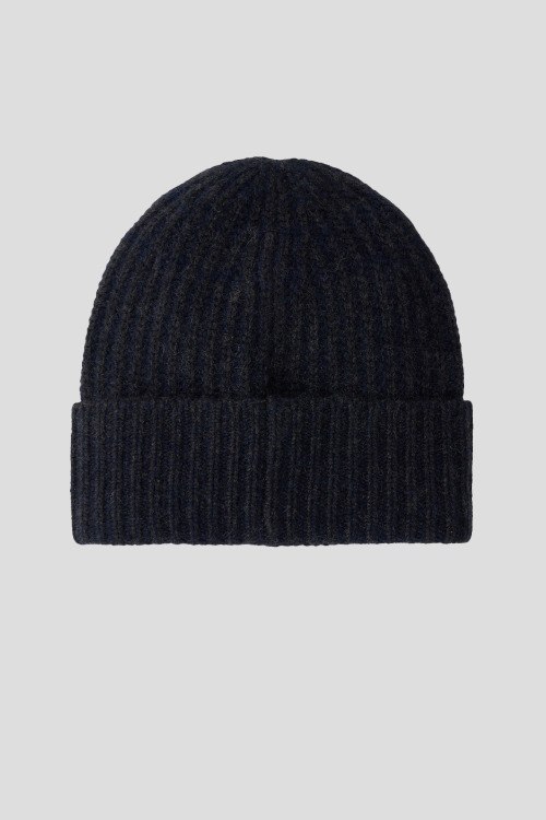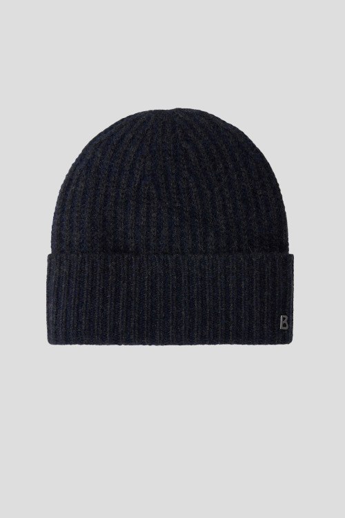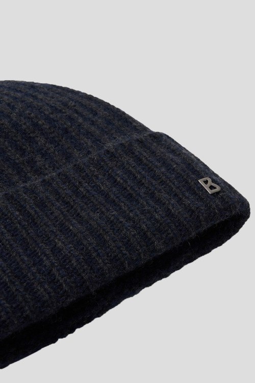 Детали: Мужская темно-синяя шапка бини из шерсти и кашемира Rex от Bogner (Богнер). Классическая вязка, нашивка с логотипом, широкий отворот