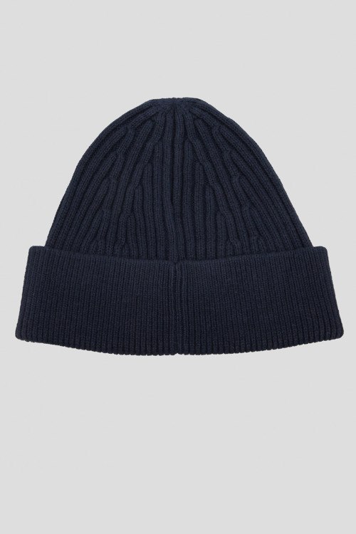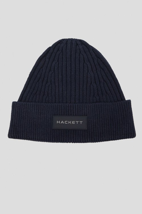 Детали: Мужская темно-синяя шапка из хлопкового микса от Hackett (Хаккетт). Дизайн в рубчик, широкий отворот, нашивка с логотипом бренда. Диаметр: 23 см