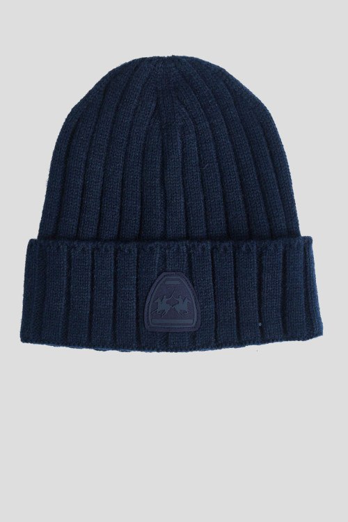 Детали: Мужская темно-синяя шапка бини с примесью шерсти от La Martina (Ла Мартина). Классический дизайн, широкий отворот, нашивка с логотипом