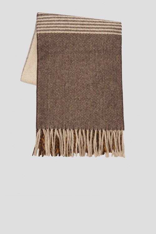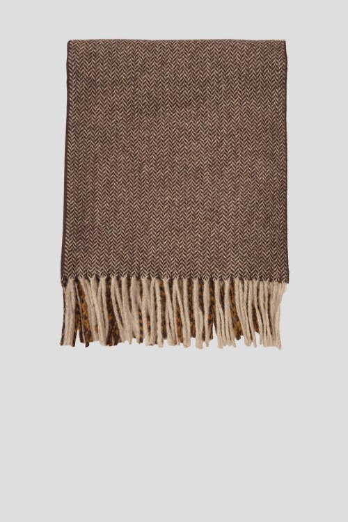 Детали: Мужской бежевый шерстяной шарф от Hackett (Хаккетт). Узор "елочка", нижние края с бахромой. Размер: 187 х 52 см