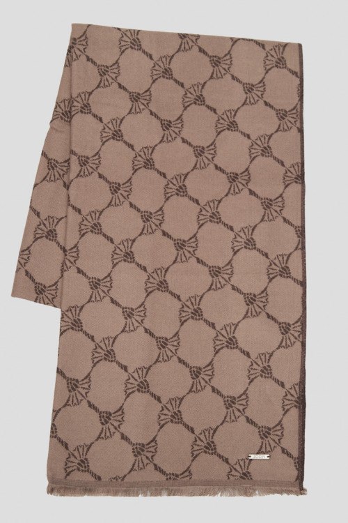Детали: Мужской коричневый шарф из вискозы от Joop! (Йооп!). Узор паттерн-лого, нижний край с бахромой. Размер: 182 x 37 см